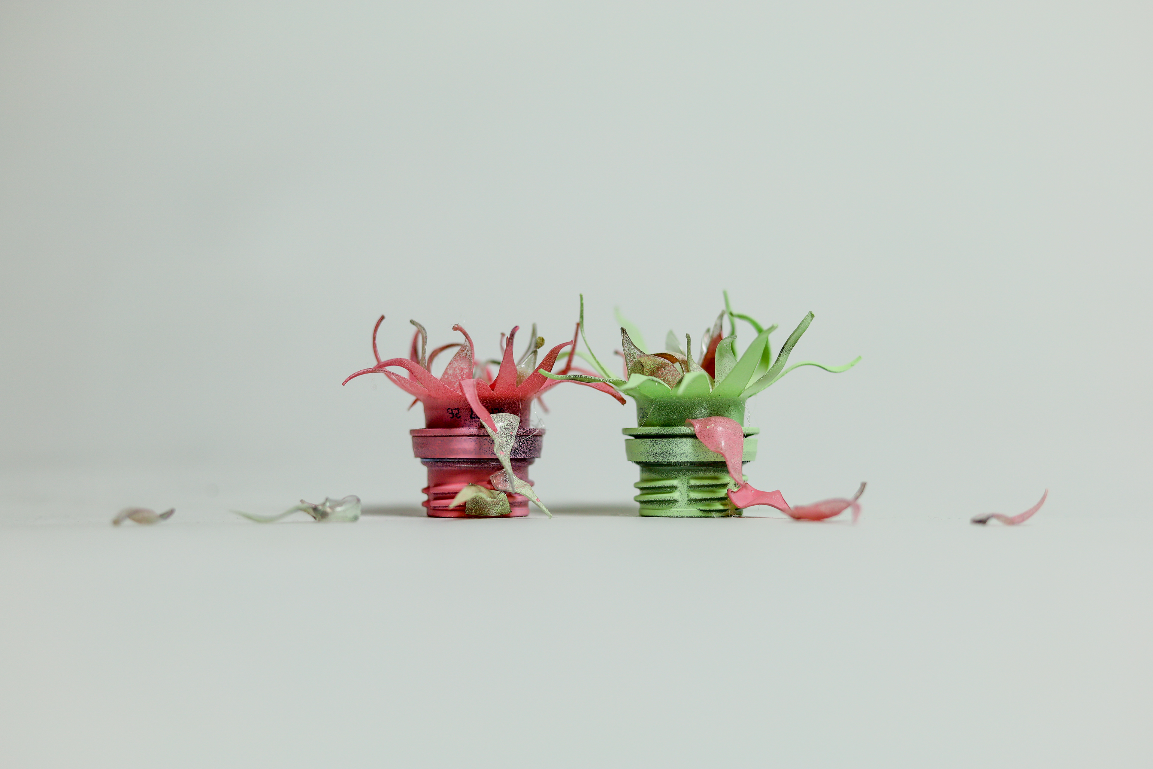 mini sculptures made from trash and spray paint