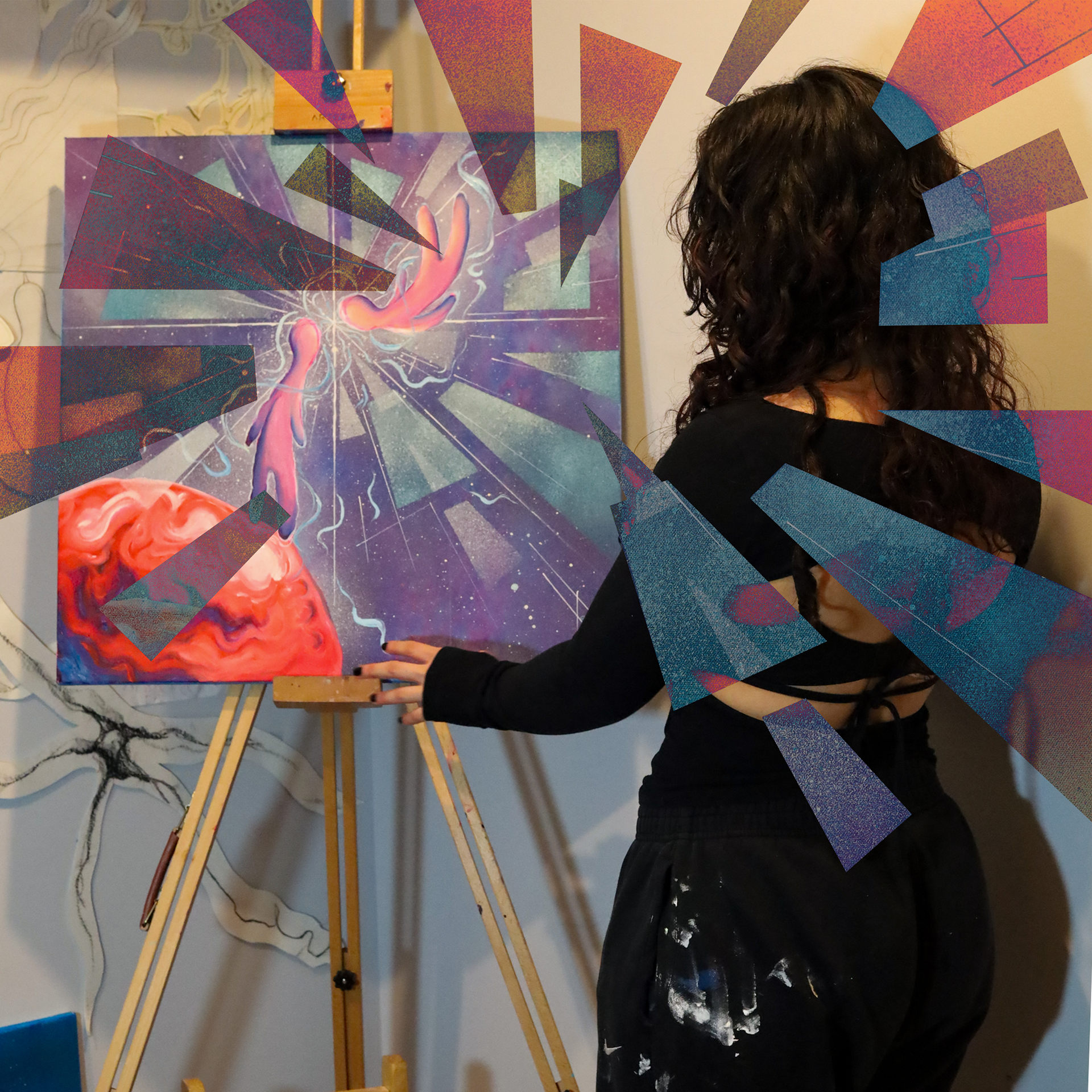 acrylic, spray paint